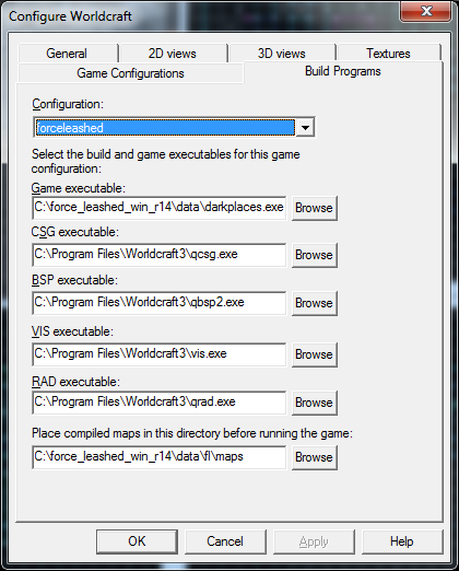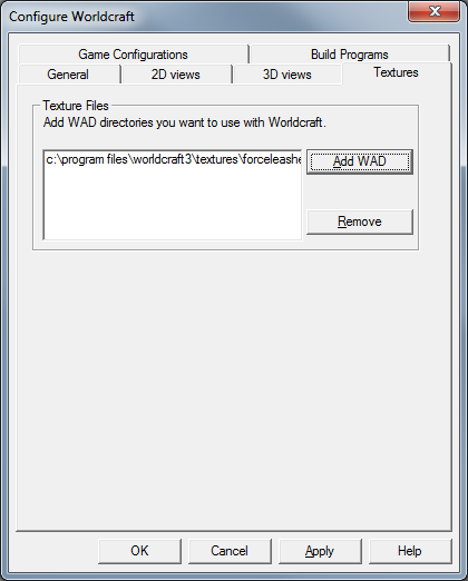 Even though the game uses separate .tga files as textures, Worldcraft expects them to be a Half-Life WAD file. That's why I have prepared forceleashed.wad to use in Worldcraft, how convenient! Choose the