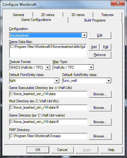 First you need to install Worldcraft 3.3 and of course the game. You also need to download the game entity data file and example maps. The engine supports Quake 1, 2 and 3 level formats and also Half-Life BSP's. The official Force: Leashed maps use Half-Life BSP and Valve's level build tools, but you should be fine with other supported formats too.